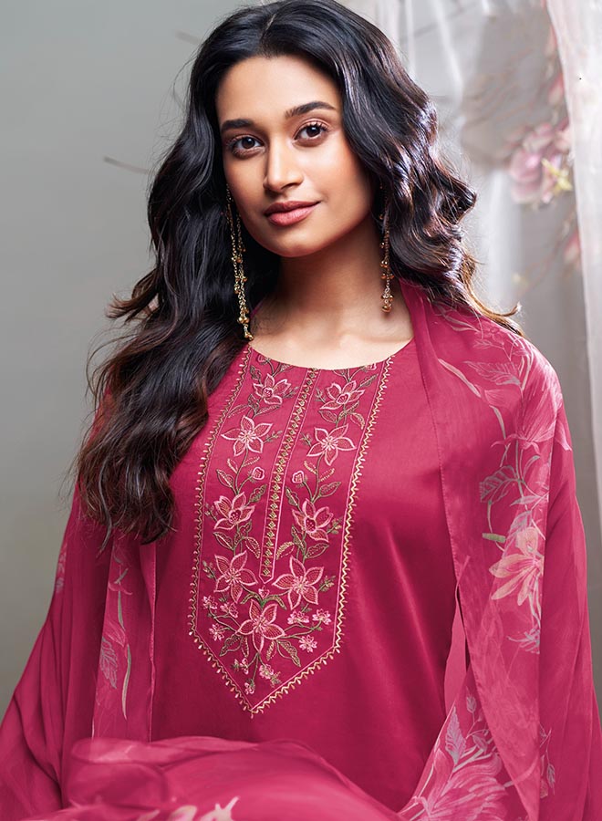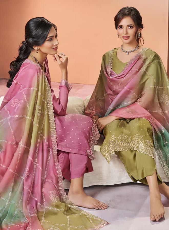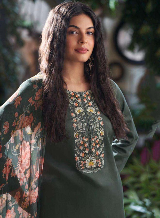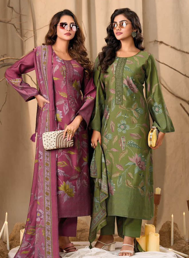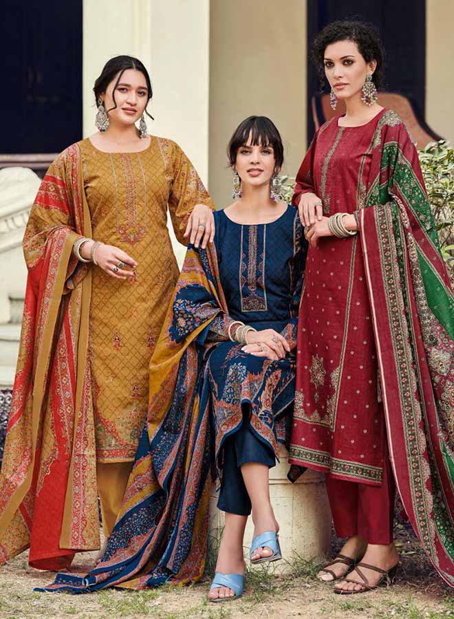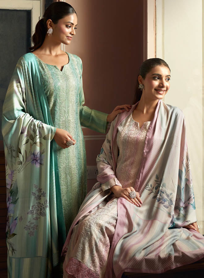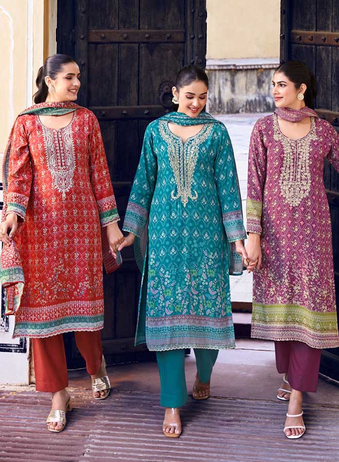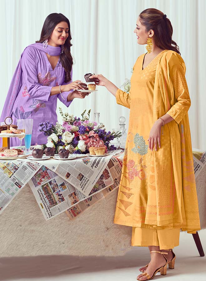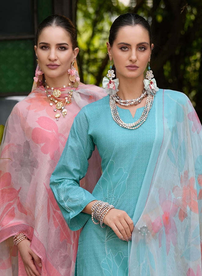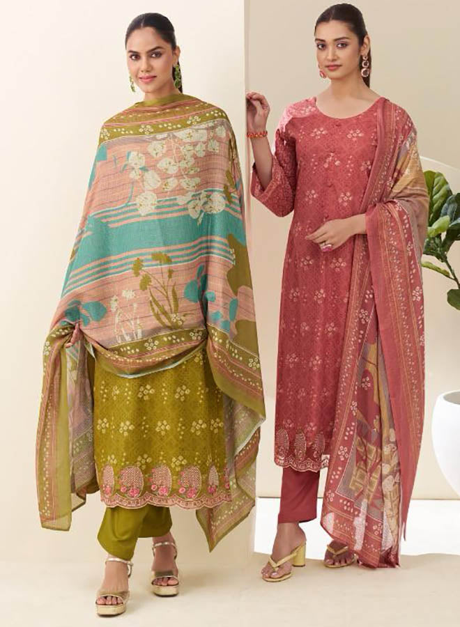 Fancy Party Wear Cotton Satin Unstitched Salwar Suit Collection for Women. Dress...