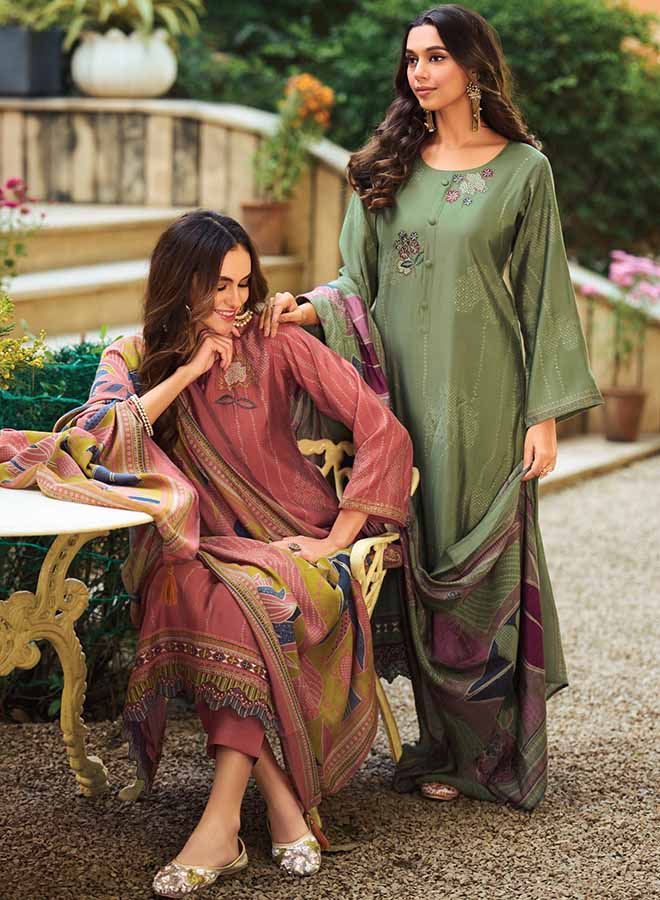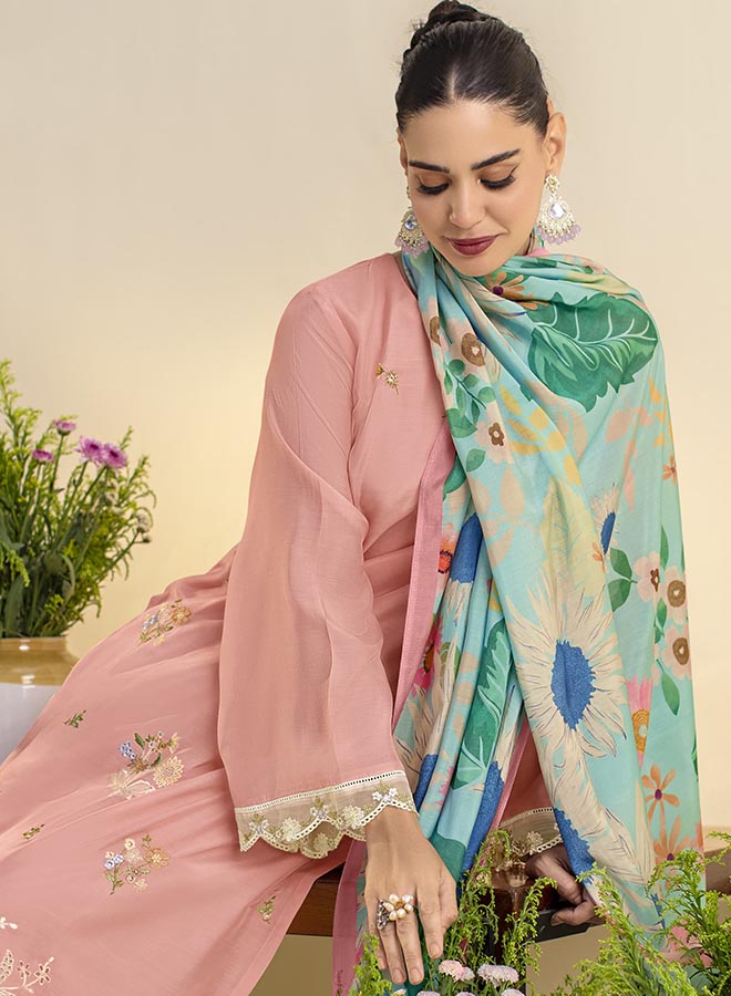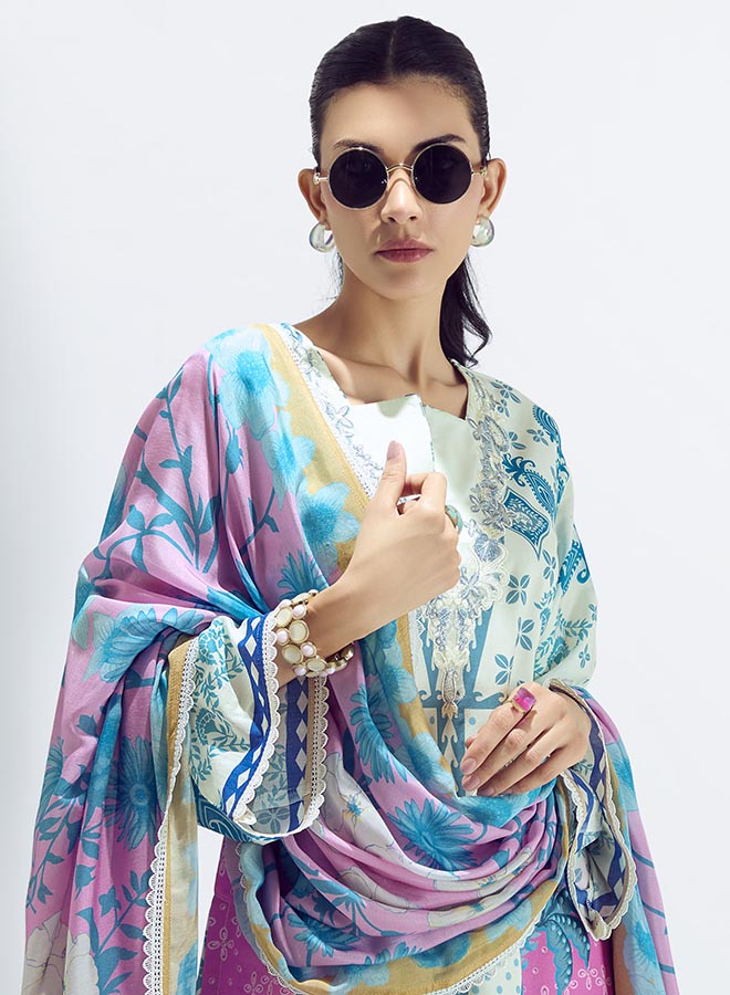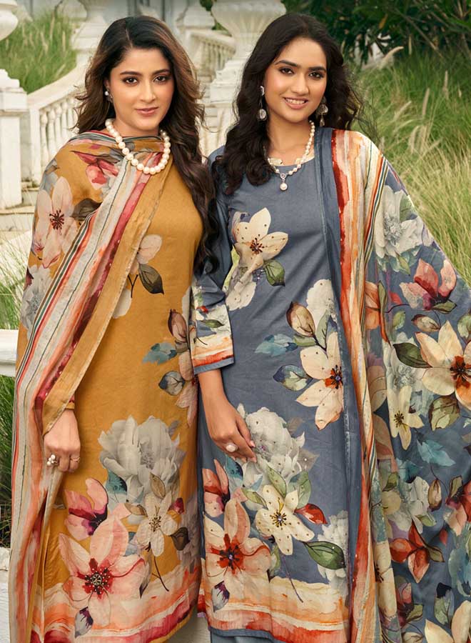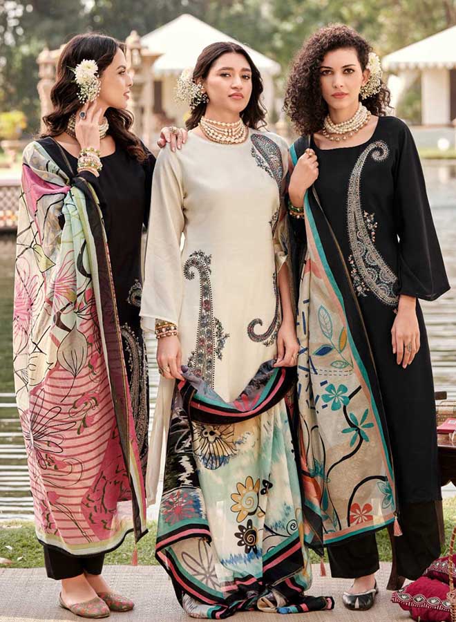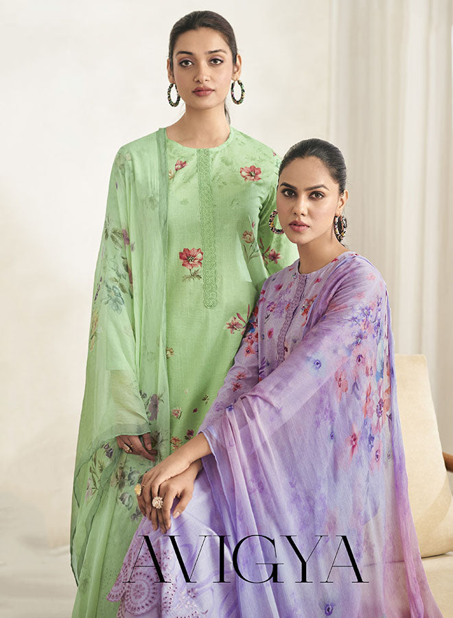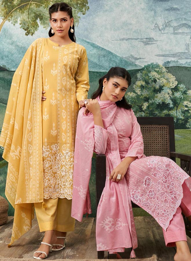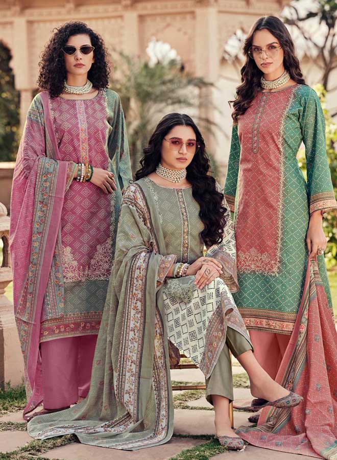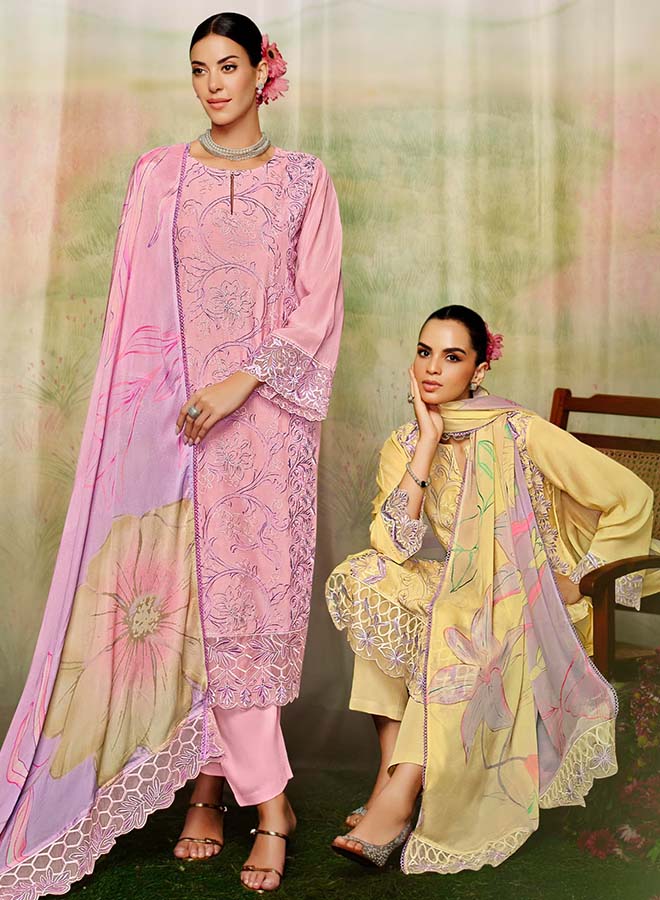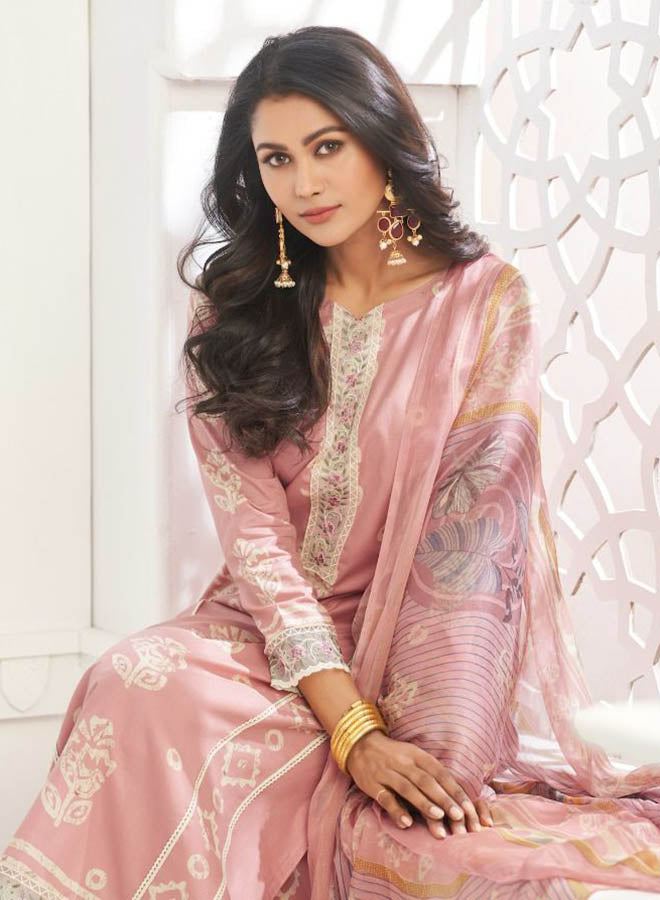 Fancy Party Wear Cotton Satin Unstitched Salwar Suit Collection for Women. Dress...