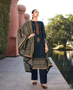 Mumtaz Arts Cotton Satin Unstitched Suits Material with Embroidery