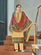 Unstitched Pure Cotton Women Green Suit Material with Embroidery