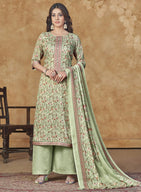 Women's Cotton Satin Green Unstitched Salwar Suit with Dupatta