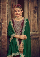 Unstitched Green Winter Velvet Salwar Suits Material for Women