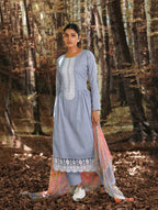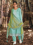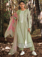 Women Unstitched Lawn Cotton Green Suit Dress Material with Embroidery