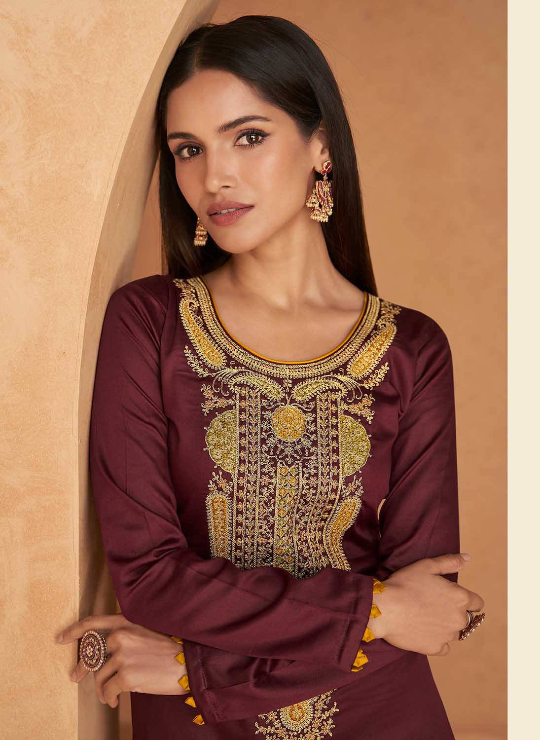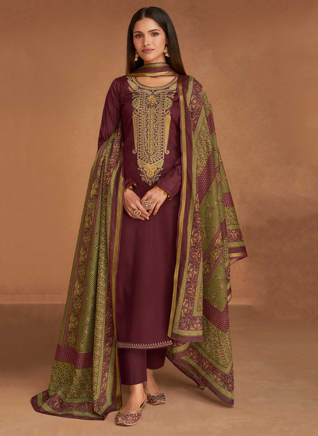 Mumtaz Arts Maroon Unstitched Pure Cotton Satin Suit Dress Material