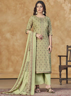 Women's Green Unstitched Cotton Satin Suit Dress Material with Dupatta