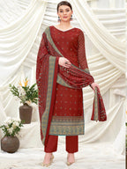 Wool Pashmina Mehandi Green Printed Unstitched Suit Set
