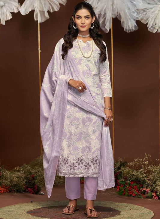Light Purple Pure Cambric Cotton Unstitched Salwar Suit Dress Material