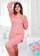 Full Sleeves Green Printed Cotton Night Suit for Women