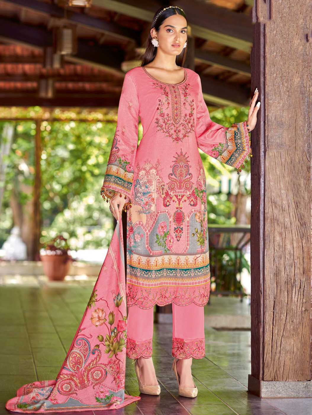 Alok Unstitched Pink Pakistani Print Salwar Suit Material