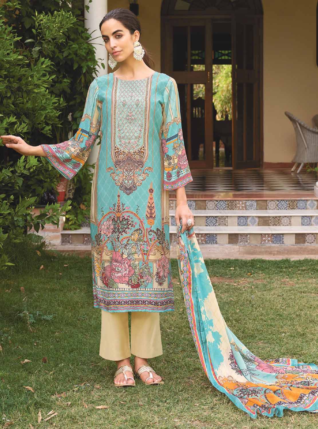 AQSA Unstitched Cotton Pakistani Salwar Suit with Embroidery