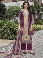 Beige Pashmina Unstitched Winter Salwar Suit Material with Muslin Dupatta