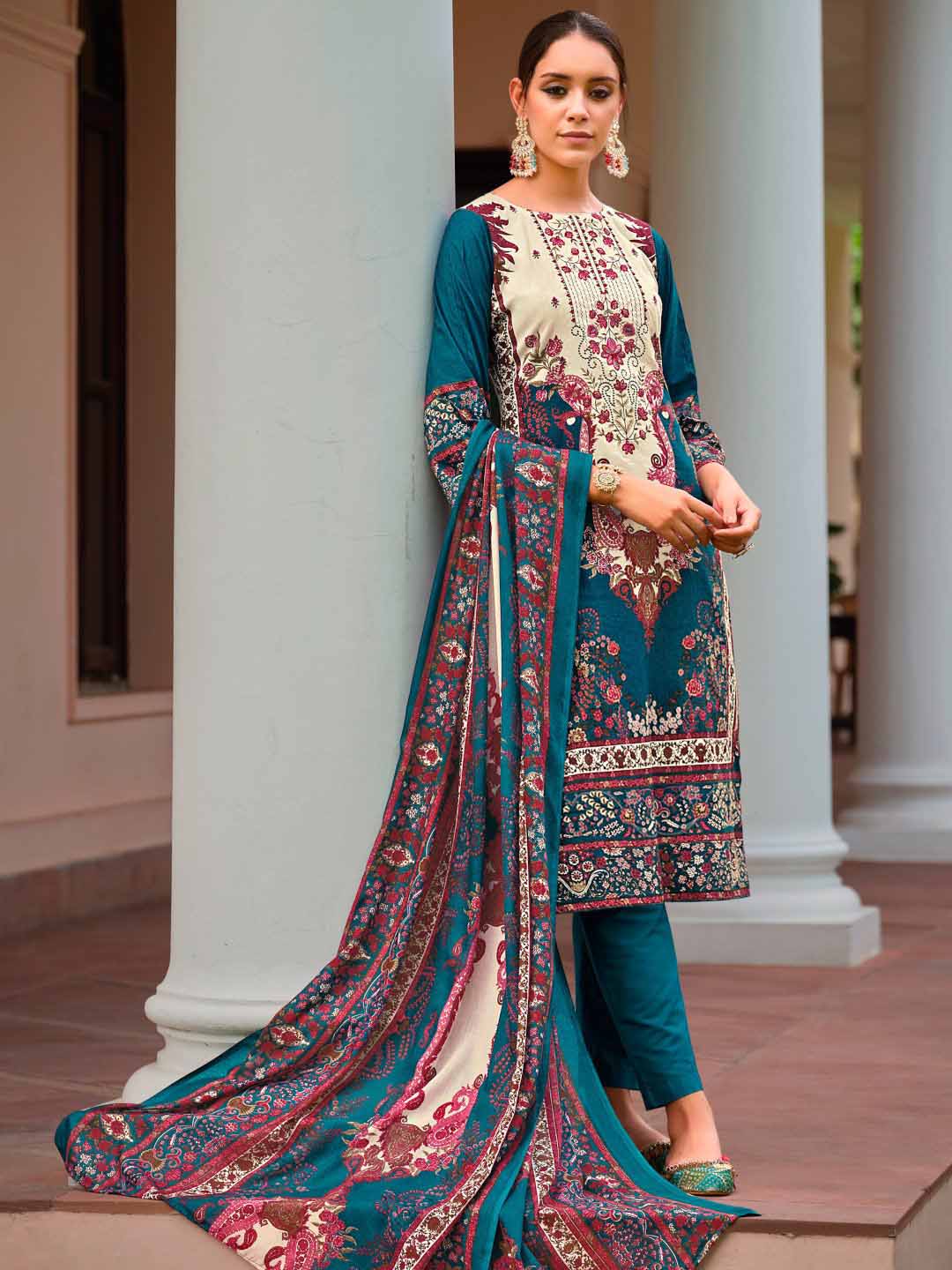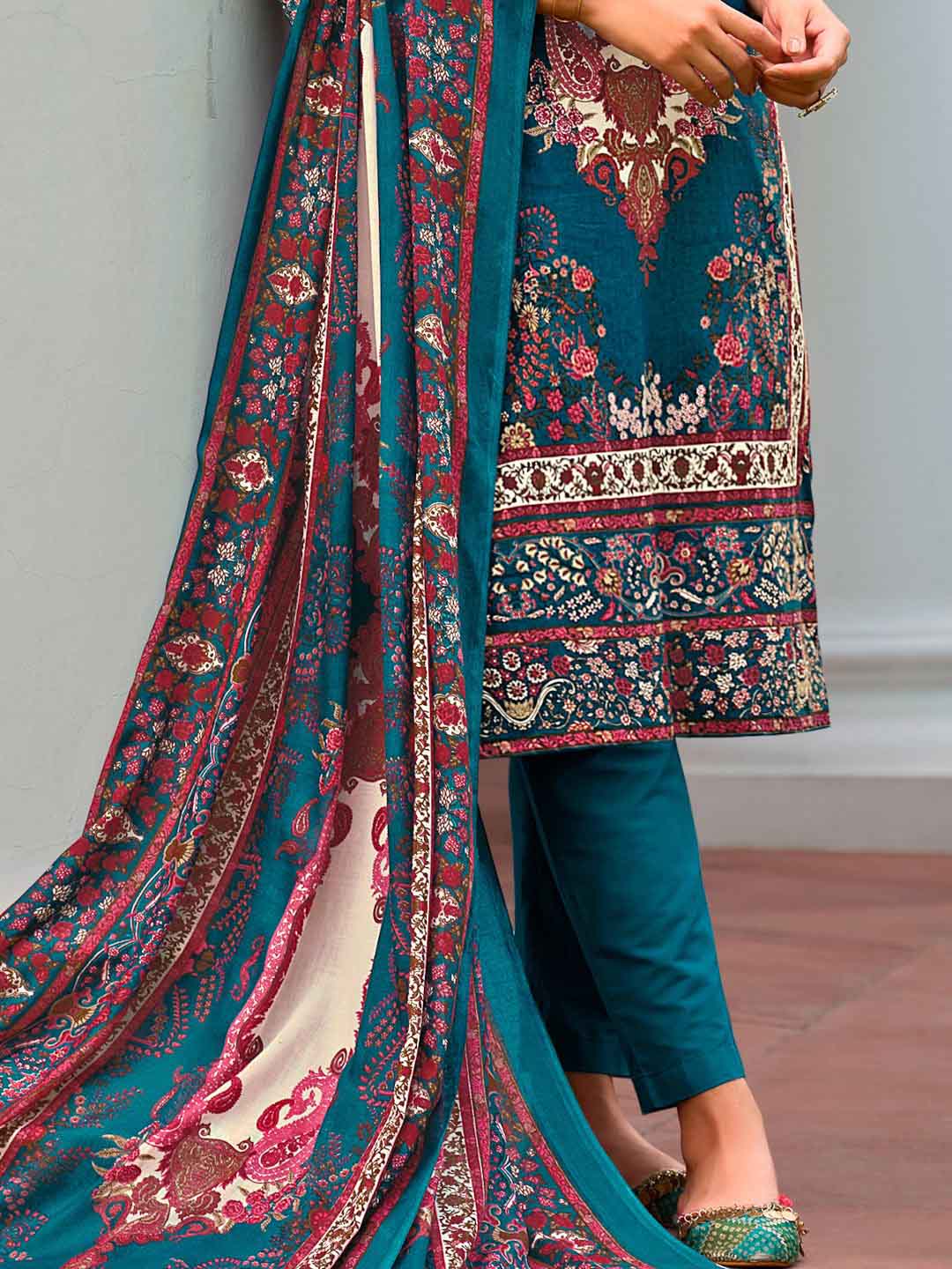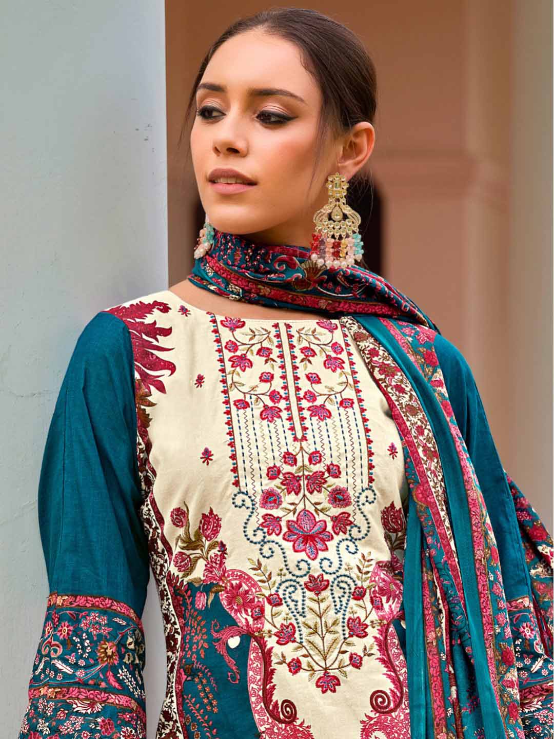 Belliza Cotton Pakistani Print Unstitched Women Salwar Suit Blue