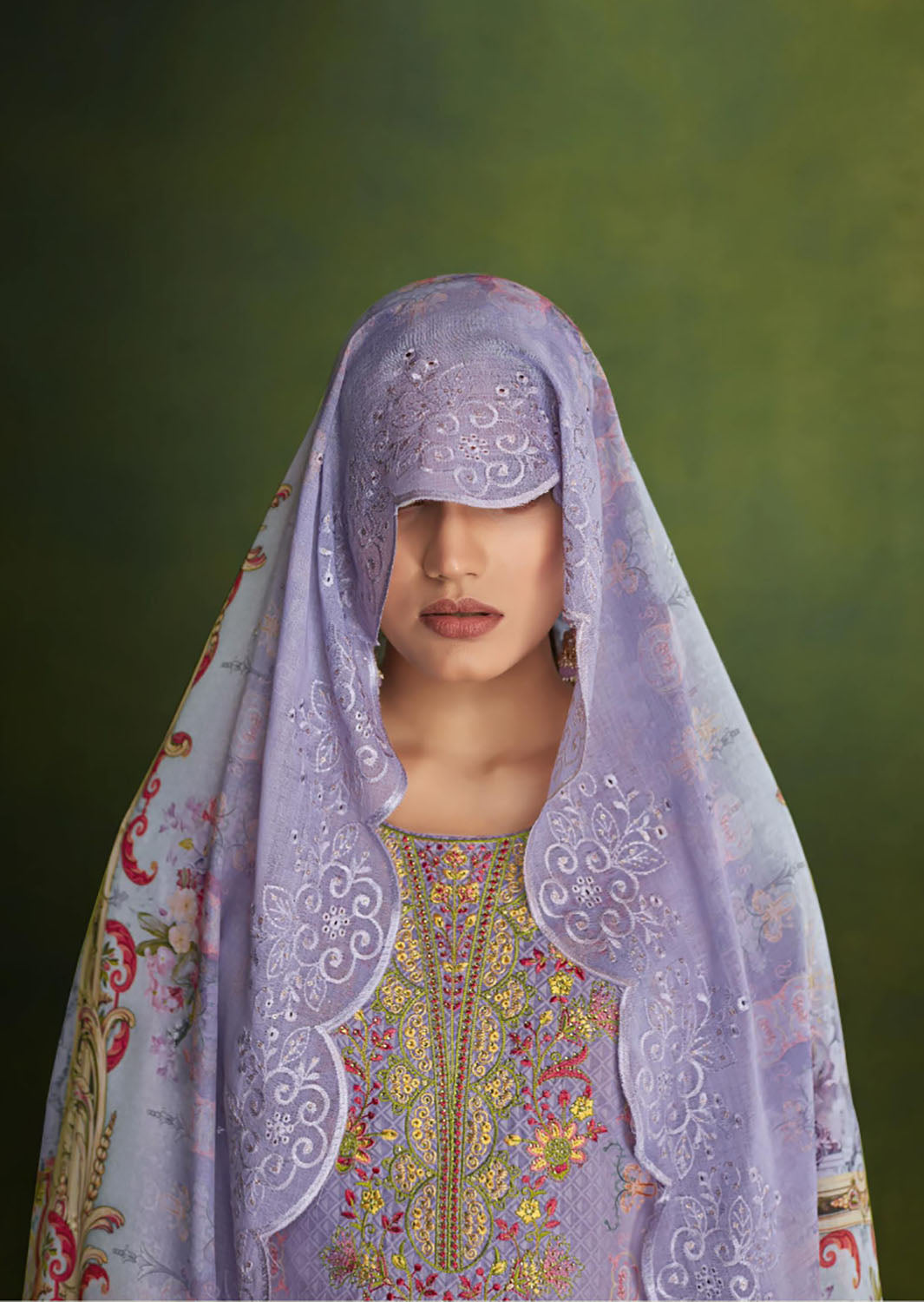 - Fabric Top: Pure Cotton Digital Print with Exclusive Self Heavy Embroidery and Swarovski Work 2.5 meters