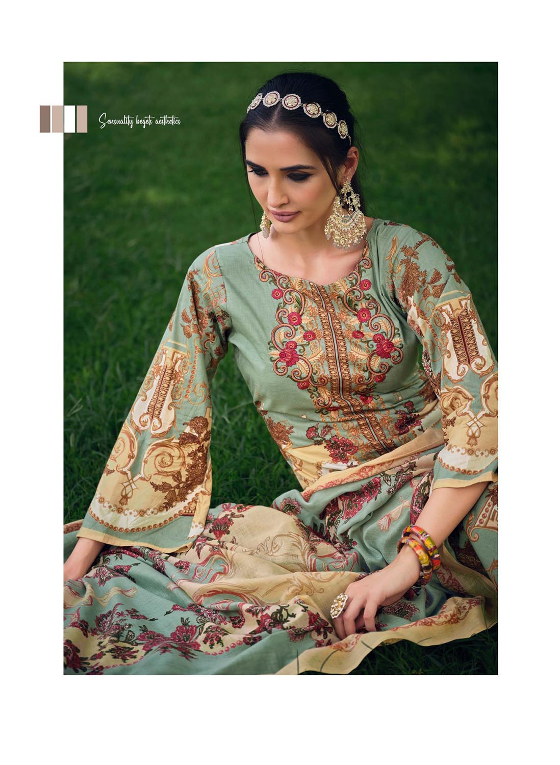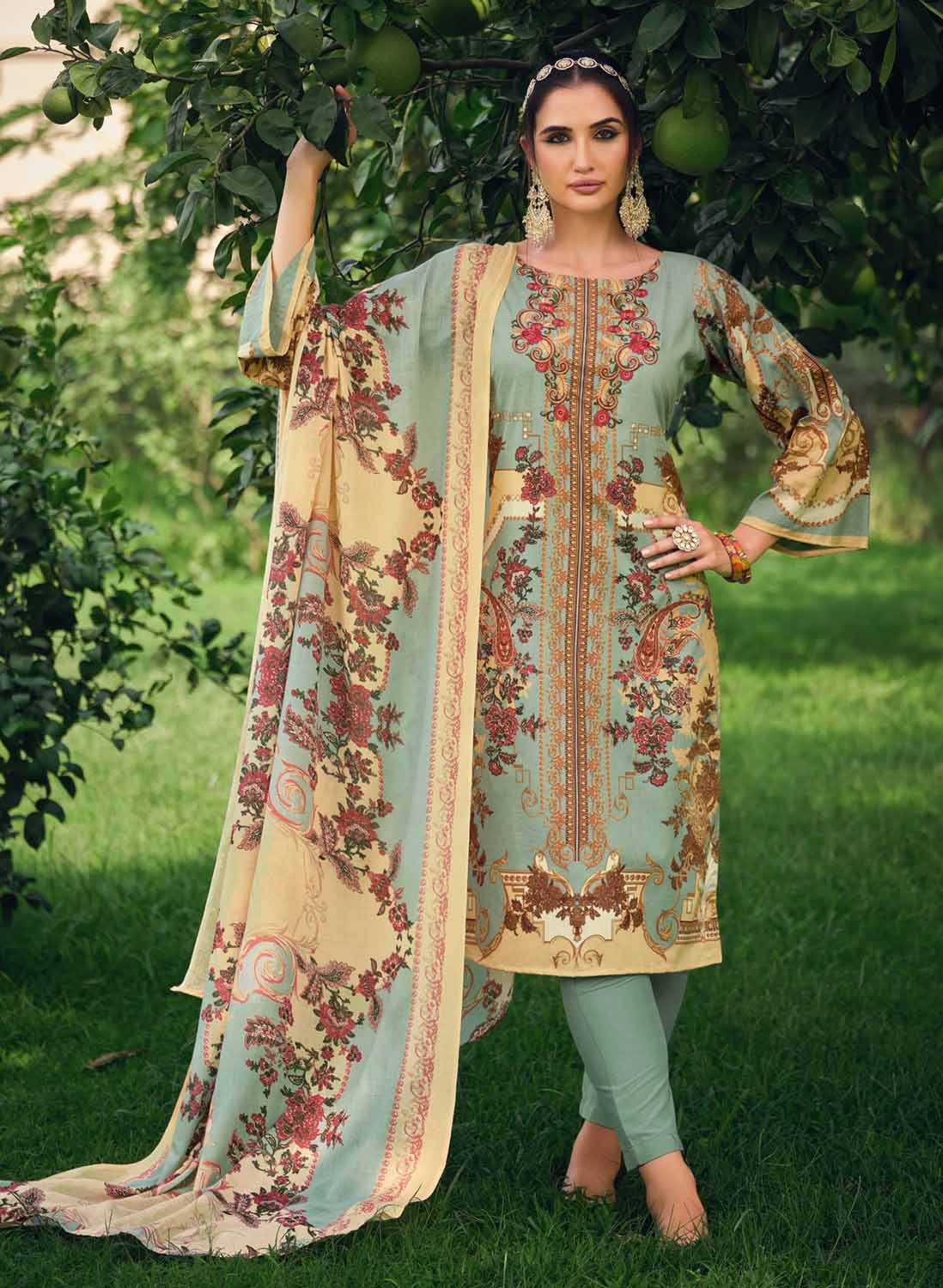 Belliza Cotton Pakistani Print Unstitched Women Salwar Suit Green