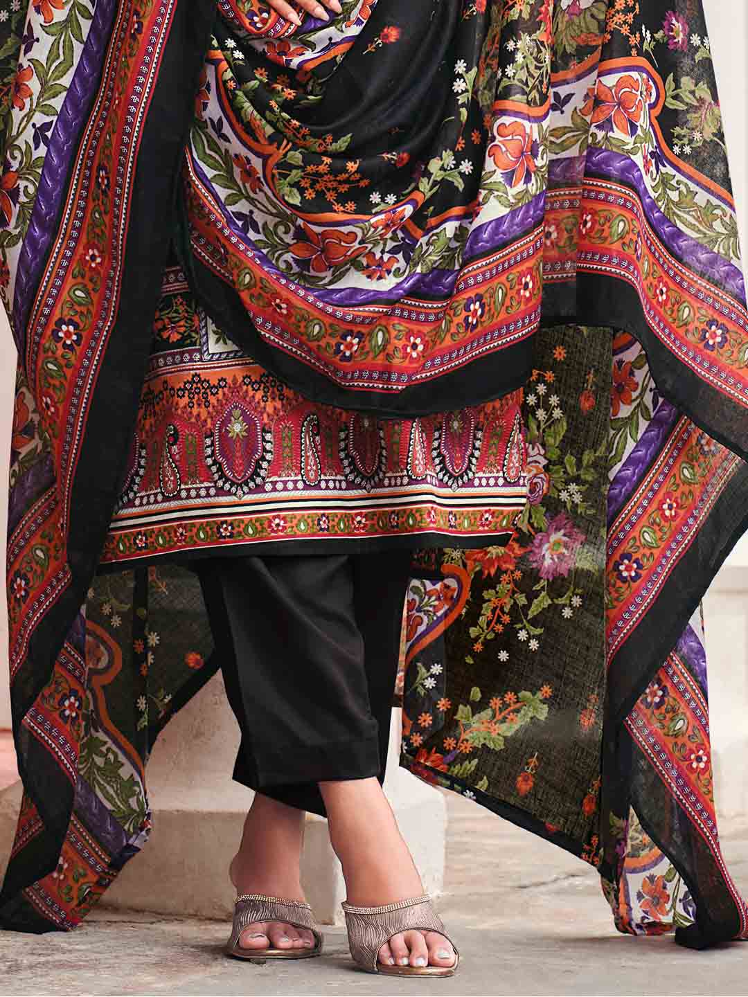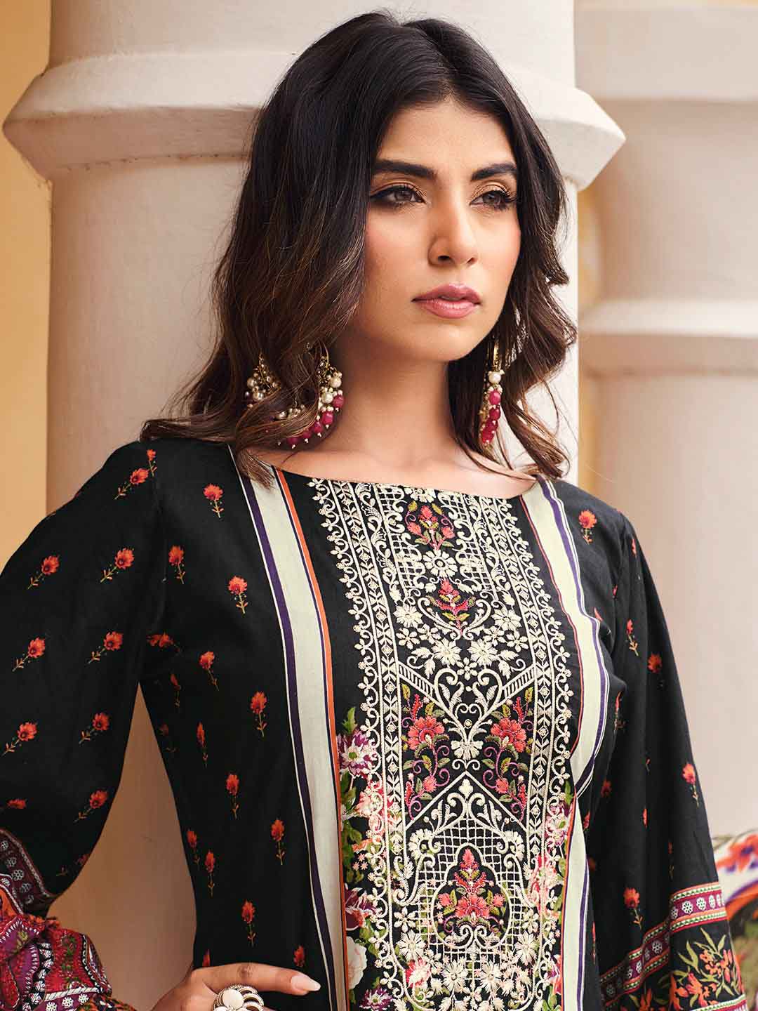 Belliza Pakistani Print Black Unstitched Women Cotton Suit Material