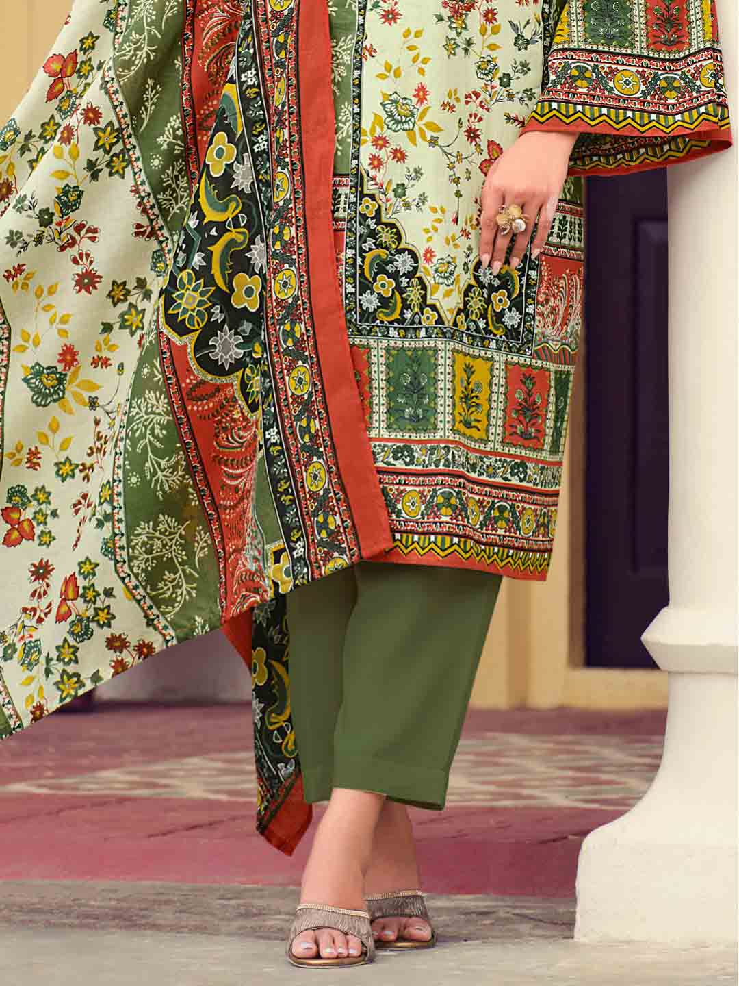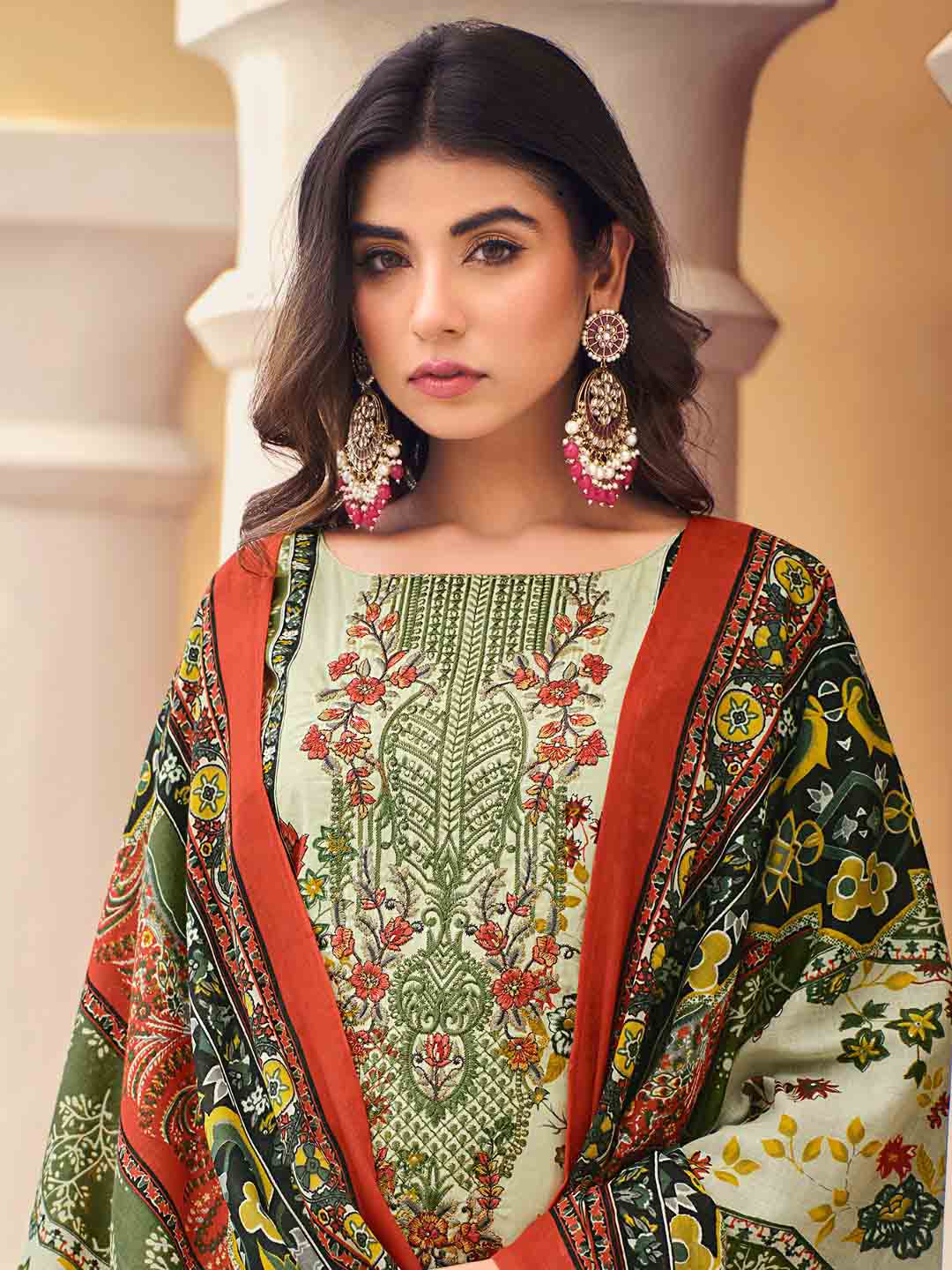 Belliza Pakistani Print Green Unstitched Women Cotton Suit Material