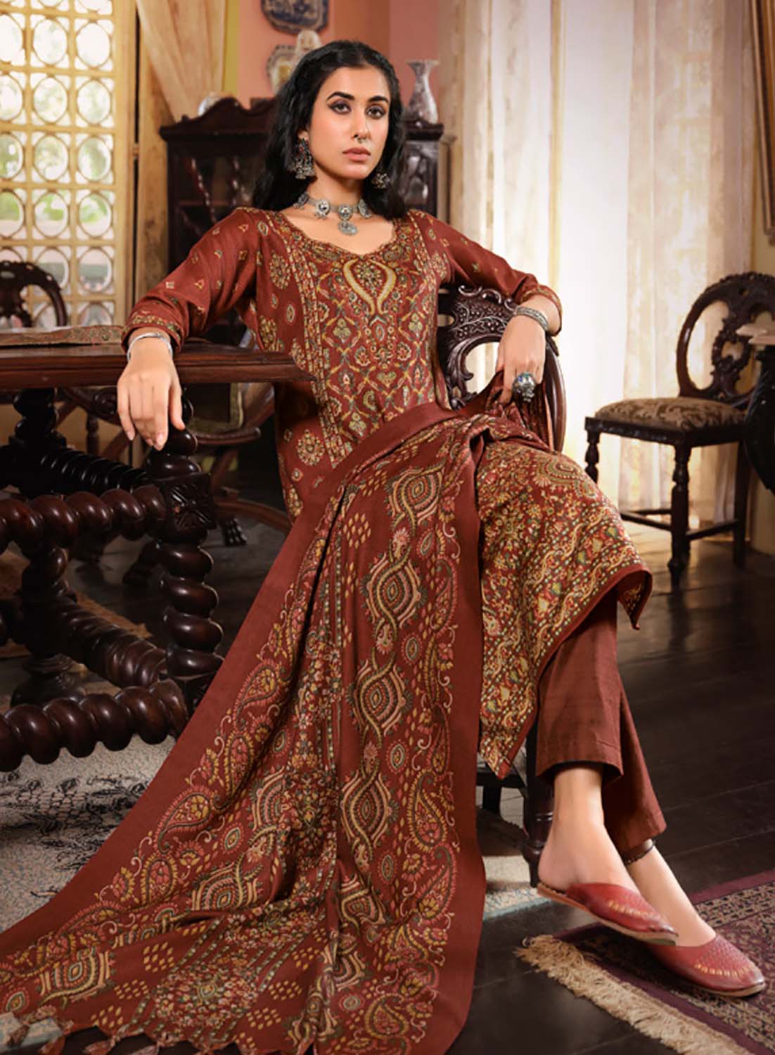 Belliza Pure Alpine Woolen Unstitched Winter Suits for Women