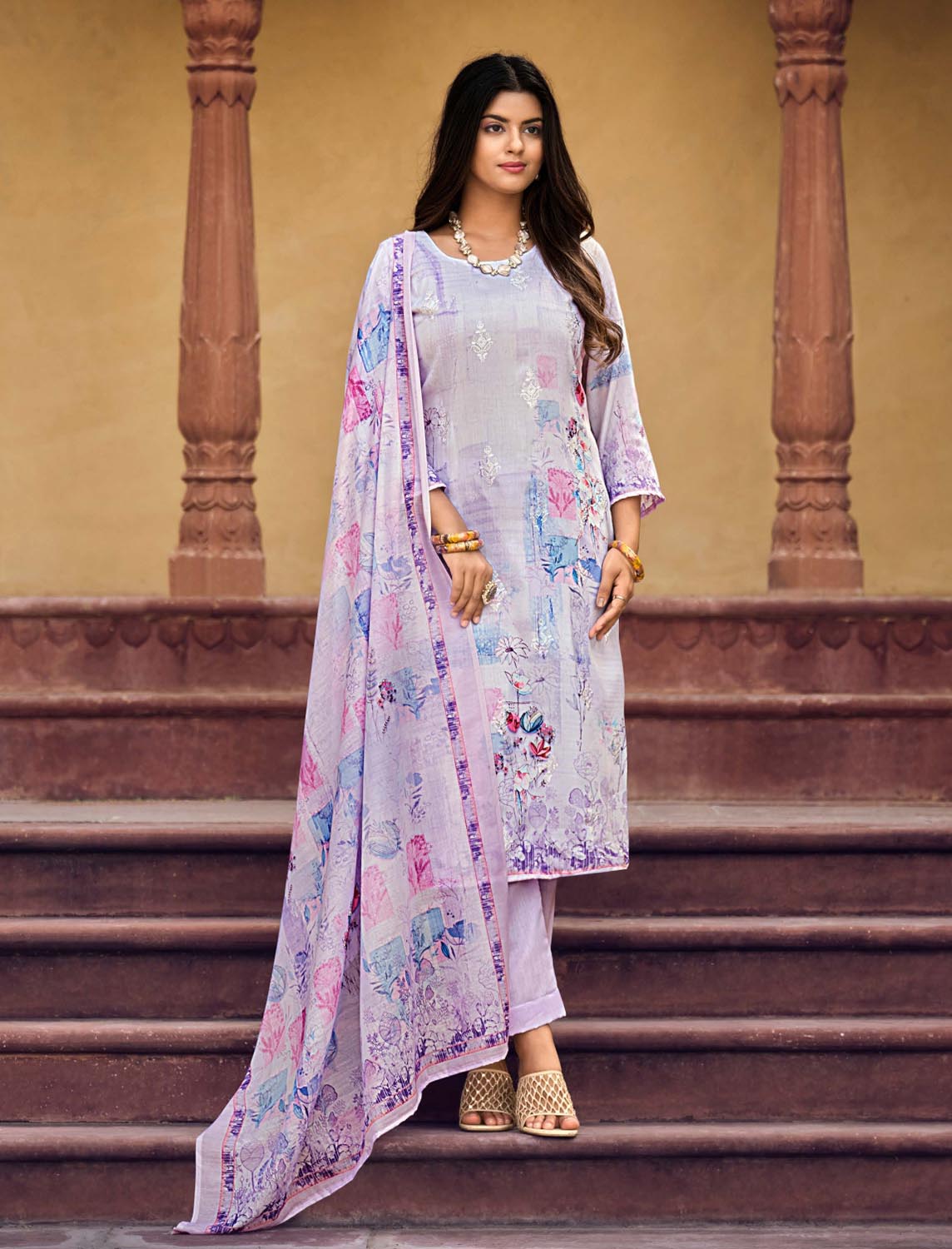 Belliza Unstitched Embroidered Women Suit Fabric Purple