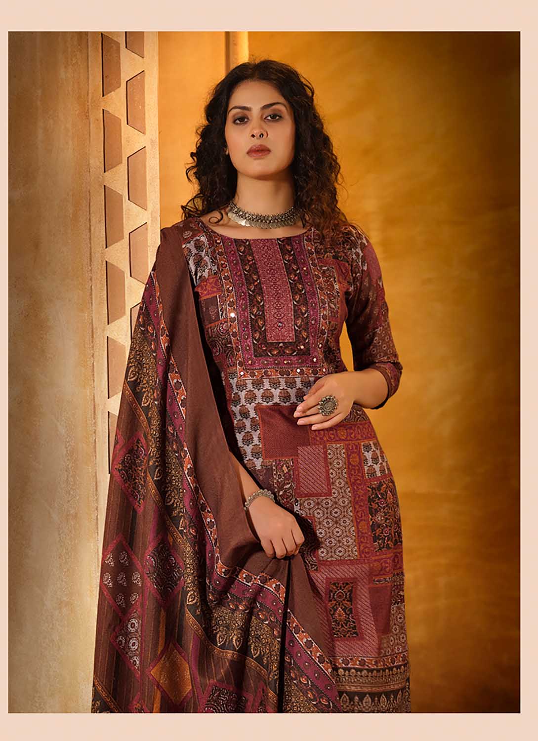- Fabric Top: Winter Alpine Wool Pashmina with Mirror Handwork 2.5 mtr