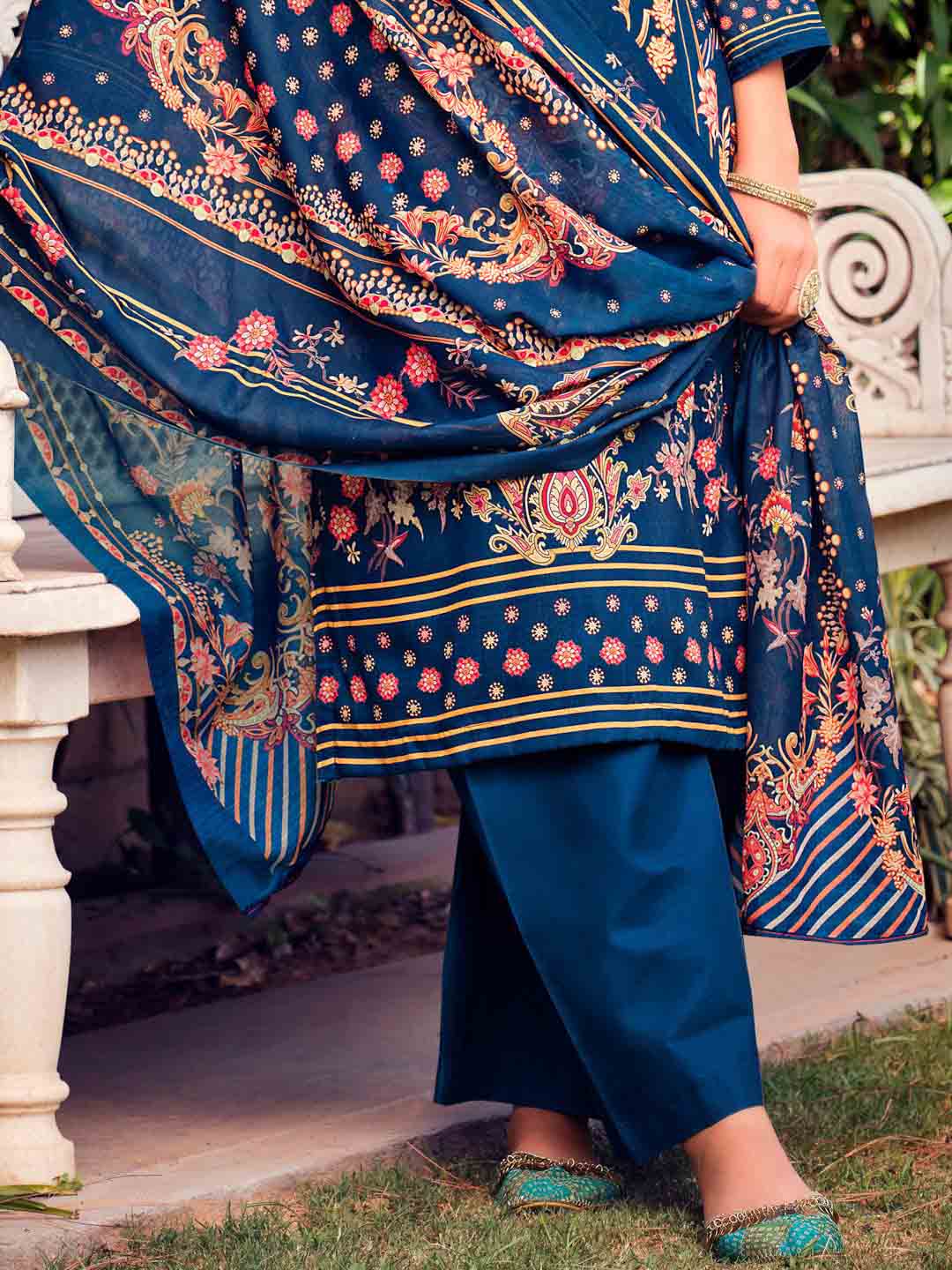 Belliza Unstitched Women Pakistani Print Cotton Suits Set Blue