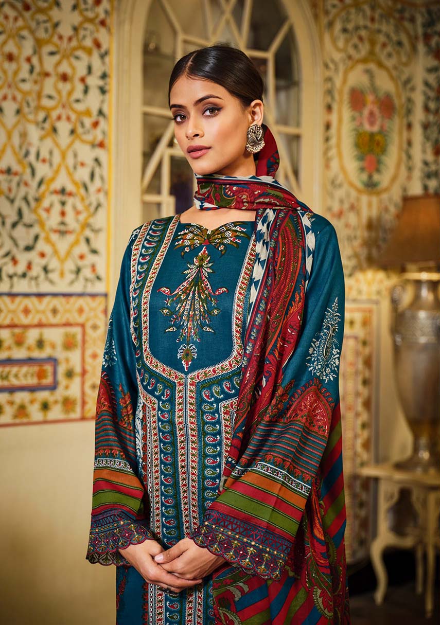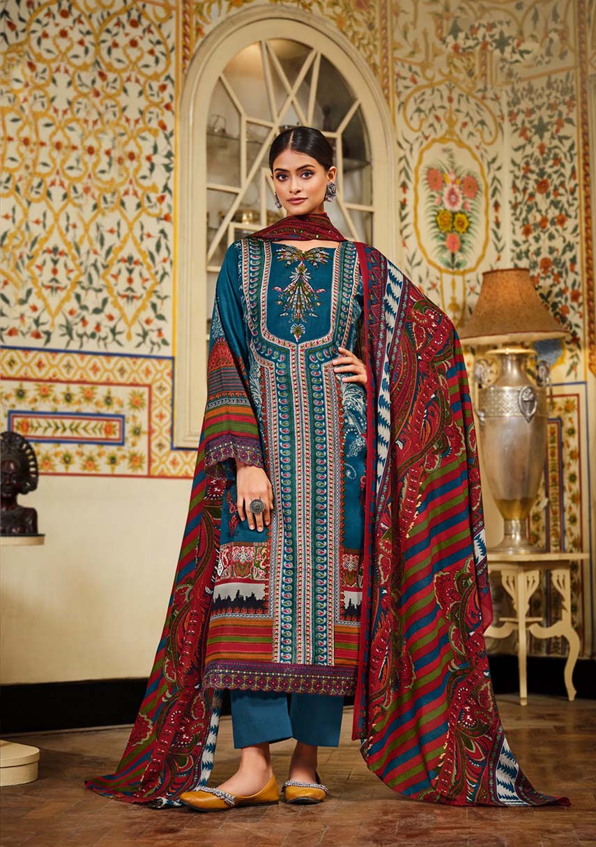 Belliza Blue Pakistani Print Unstitched Cotton Suit Dress Material
