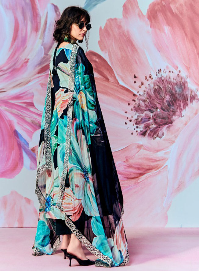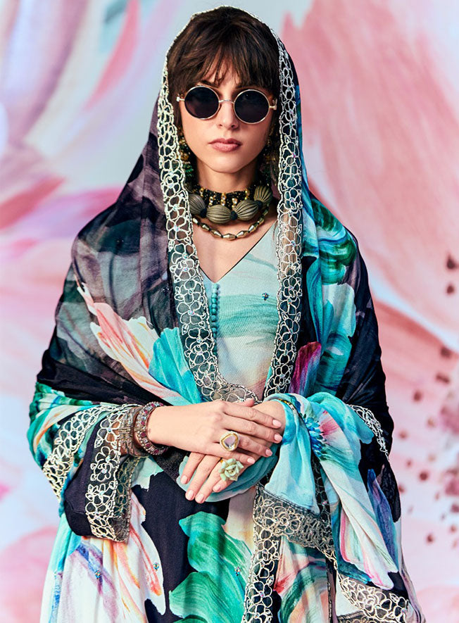 - Dupatta: Pure Chinon Printed and Pearl Dori Embroidery Cutwork Border 2.25 meters