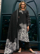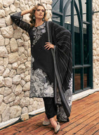 Black Pashmina Unstitched Winter Suit Material with Shawl Dupatta