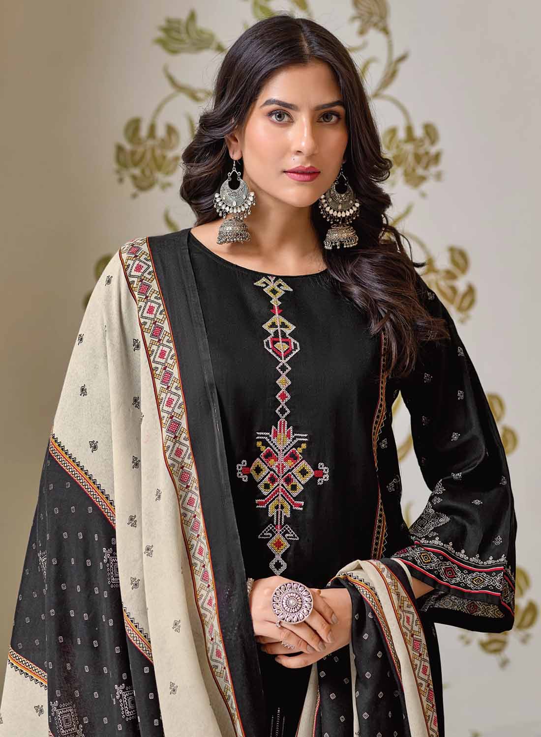 Black Unstitched Cambric Cotton Suit Dress Material with Embroidery