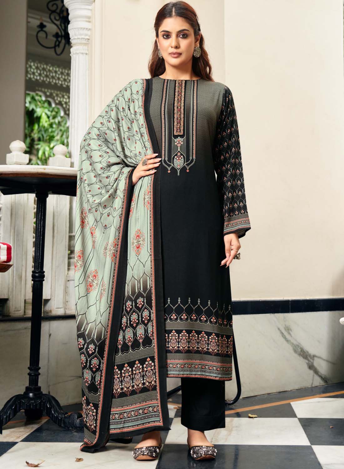 Black Unstitched Pashmina Winter Salwar Suit Dress Material for Women