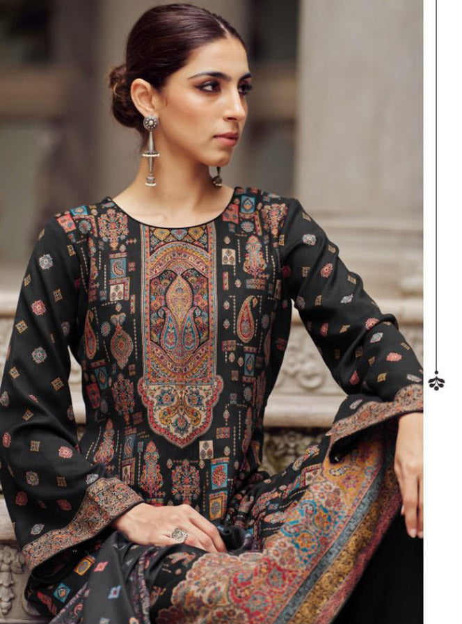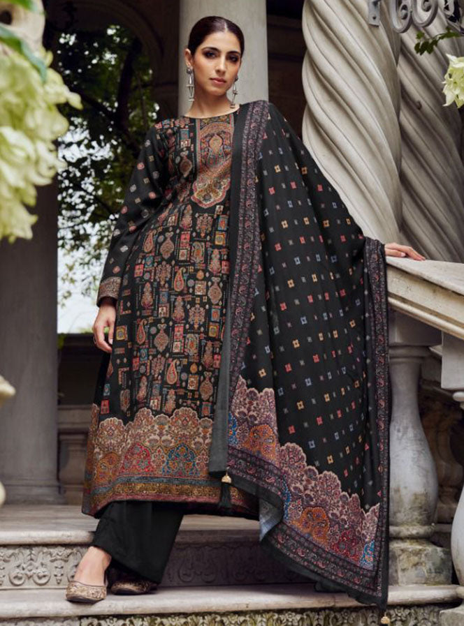 Black Unstitched Pure Pashmina Woven Winter Suit Dress Material for Women