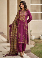 Black Winter Pashmina Unstitched Salwar Suit Set Material for Women