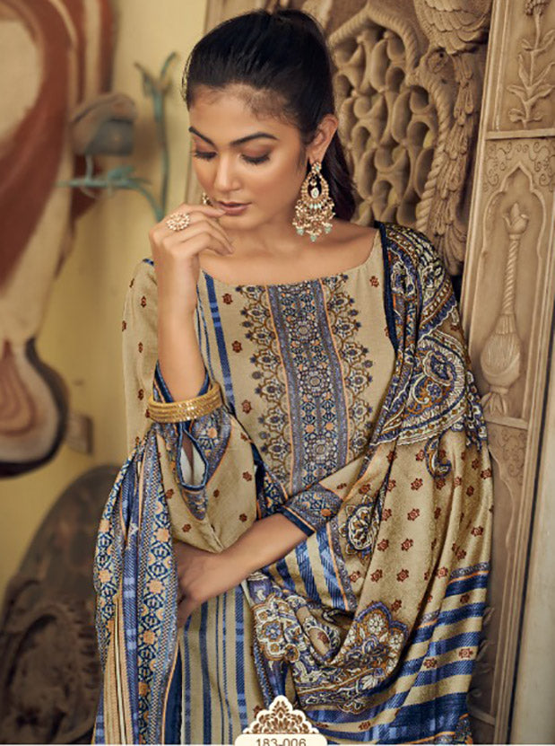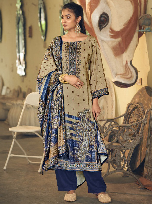 Blue Pure Russian Velvet Unstitched Winter Suit Dress Material for Women