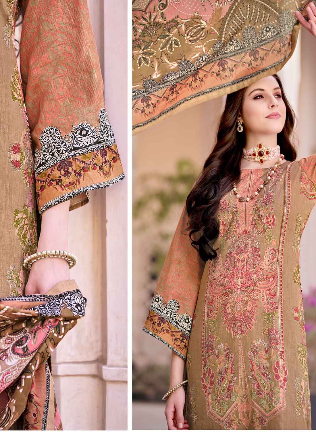 Brown Pure Cotton Pakistani Print Unstitched Suit Material for Women
