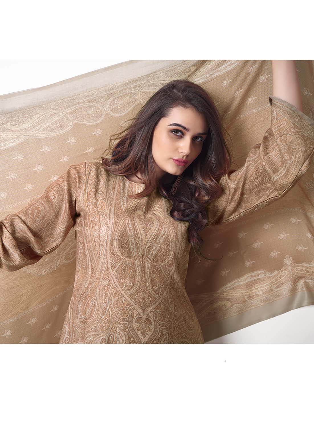 Brown Unstitched Pashmina Winter Salwar Suits Fabric for Ladies