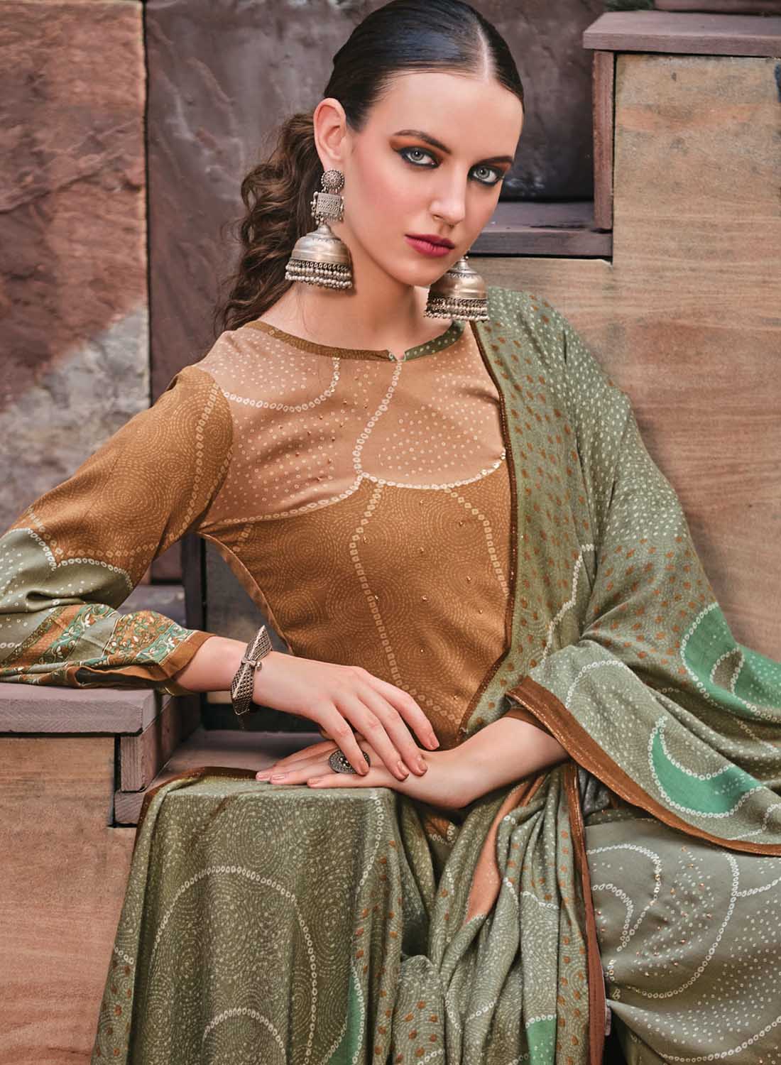 Brown Winter Woolen Unstitched Suit Dress Material for Women