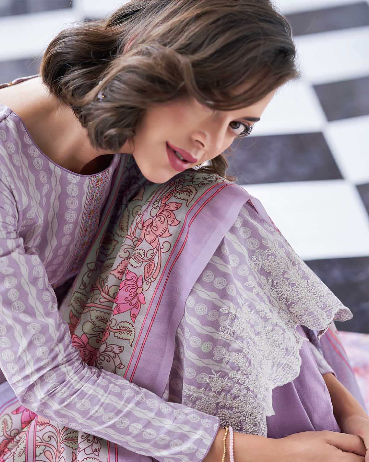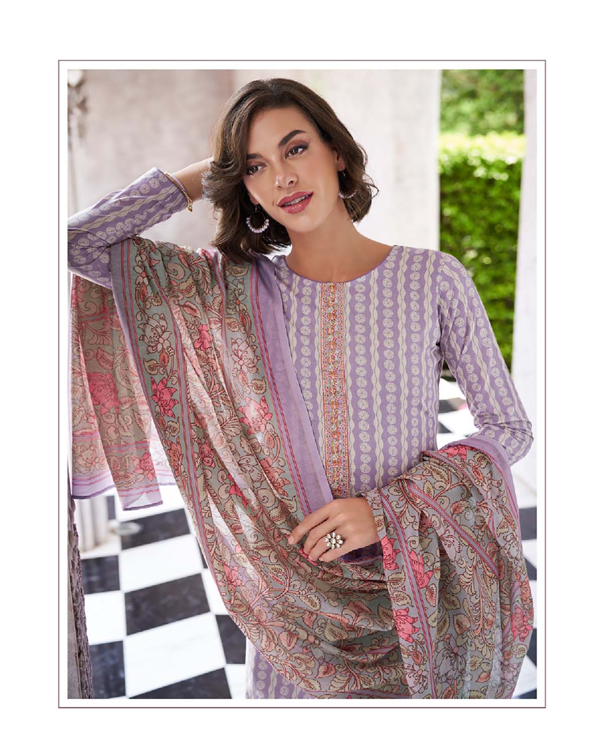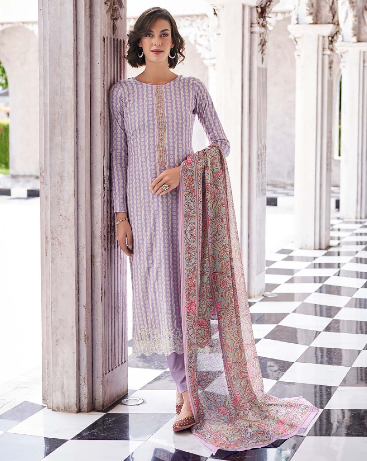 Mumtaz Arts Cotton Embroidered Unstitched Women Suit Fabric Purple