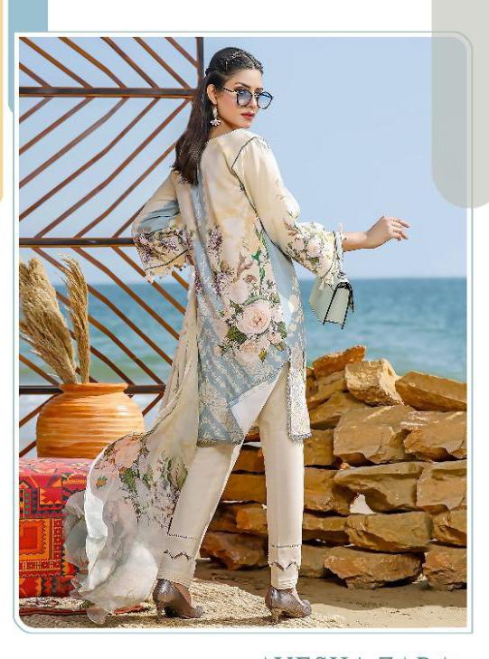 Cotton Unstitched Pakistani Brown Dress Material with Chiffon Dupatta