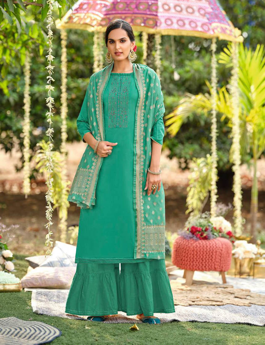 Alok Cotton Unstitched Green Salwar Suit Material for Women