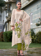 Cream Light weight Unstitched Women Winter Woollen Suit Dress Material