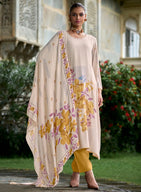 Cream Light weight Unstitched Women Winter Woollen Suit Dress Materials