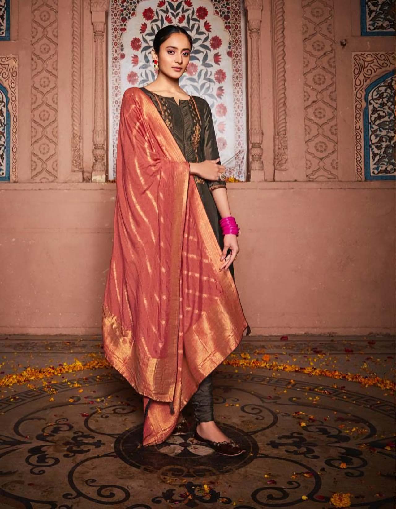 Deepsy Festive Wear Brown Unstitched Heavy Silk Salwar Suits