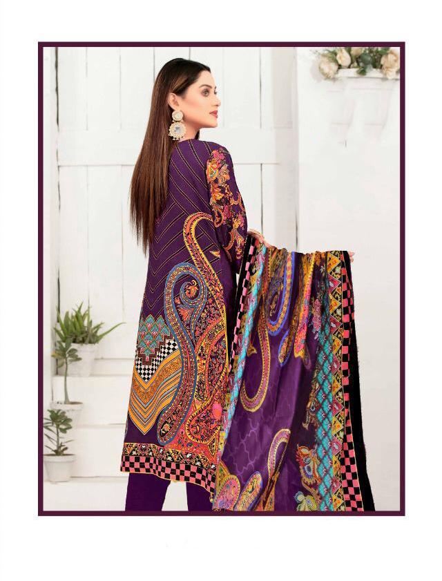 Designer Purple Lawn Cotton Salwar Kameez Dress Material