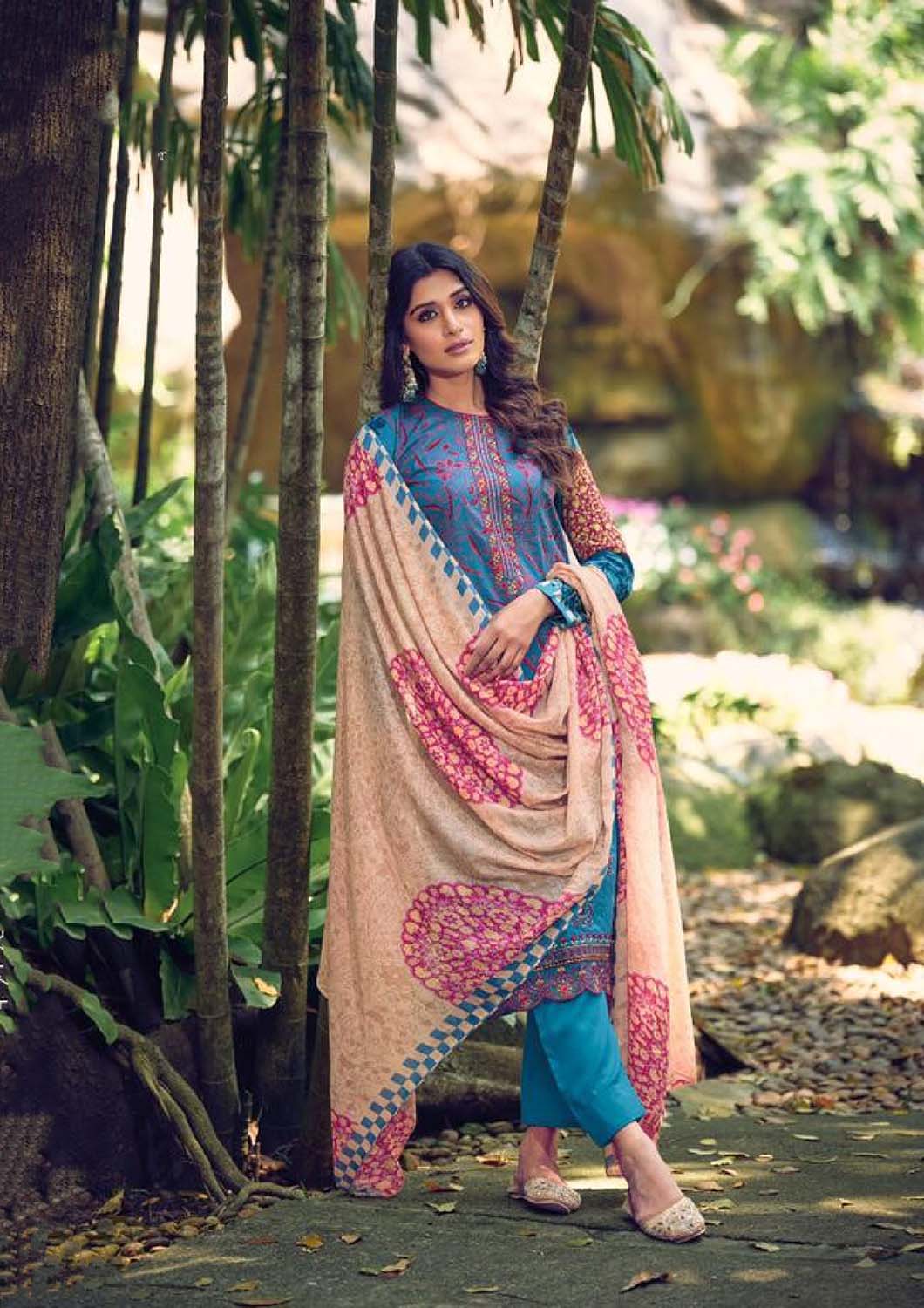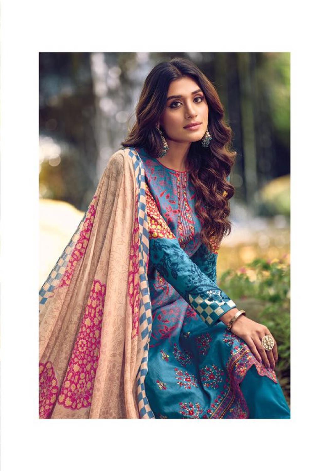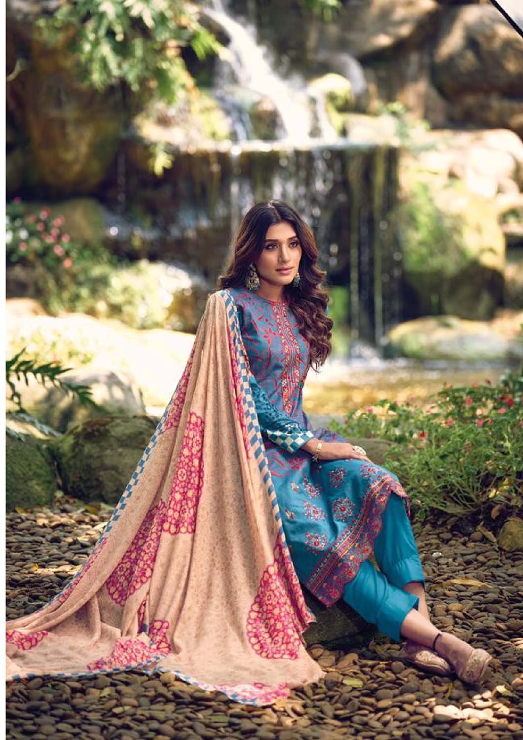 Aqsa Unstitched Cotton Suits Material Printed Embroidered Blue