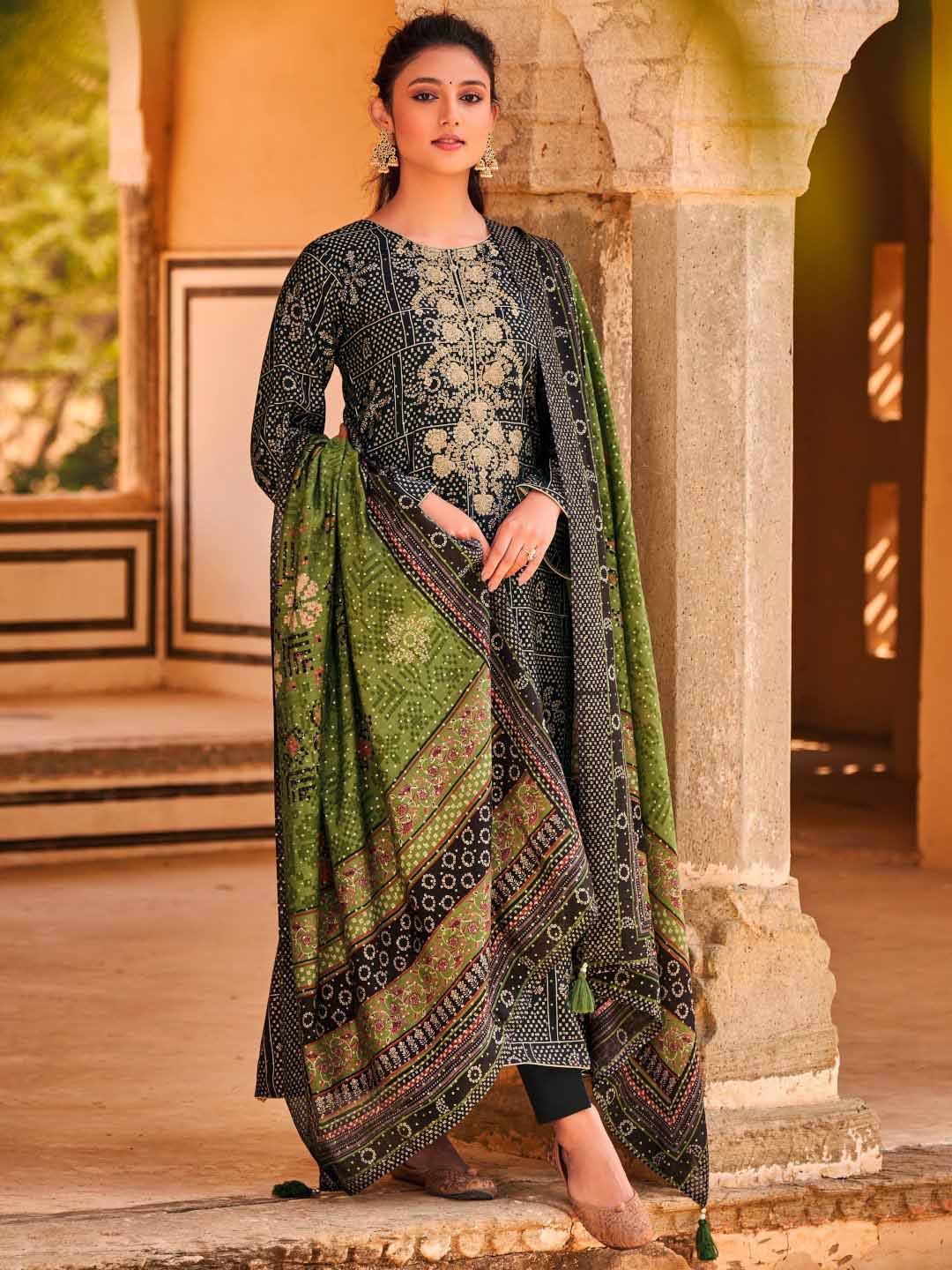 Embroidered Black Viscose Unstitched Women Suit Dress Materials