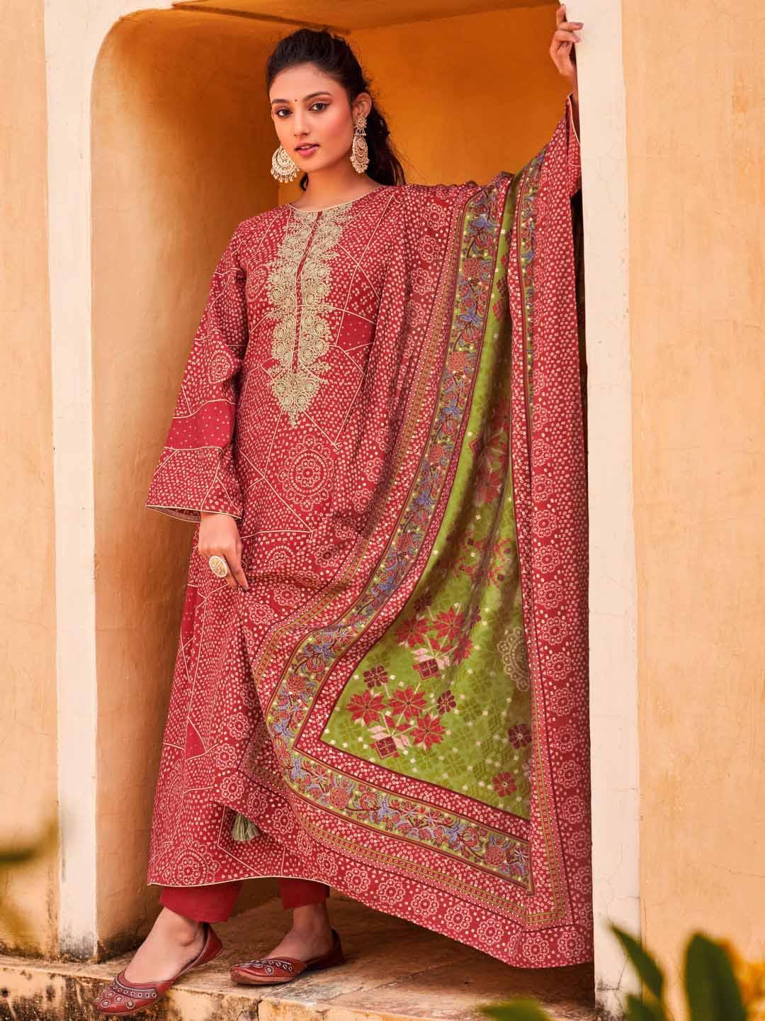 Embroidered Red Viscose Unstitched Women Suit Dress Materials