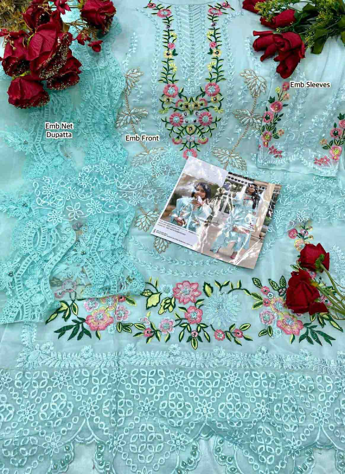 Faux Georgette Pakistani Style Unstitched Sky Blue Suits With Net Dupatta