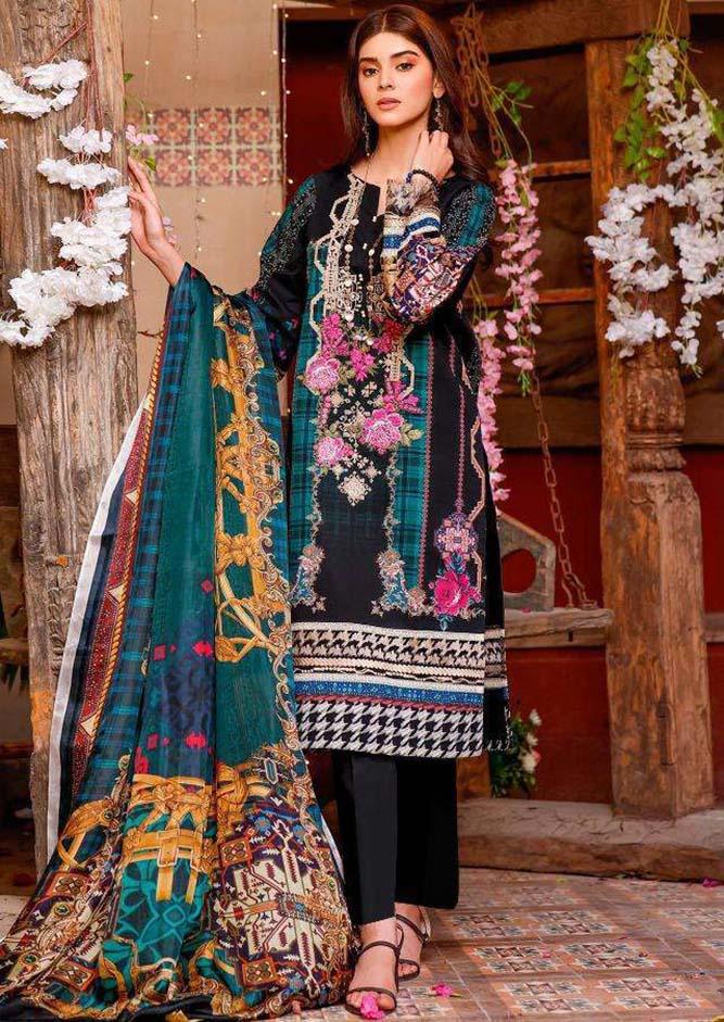 Firdous Pakistani Black Unstitched Cotton Suit Dress Material