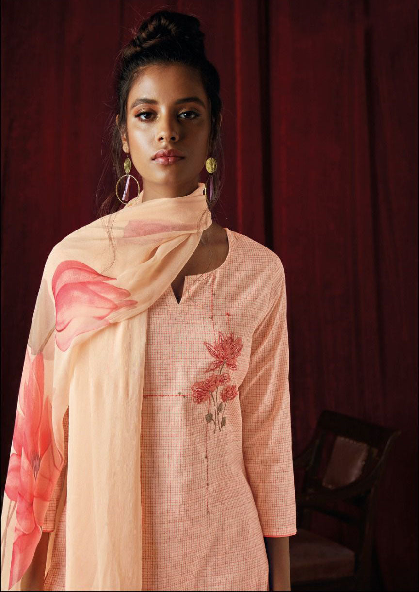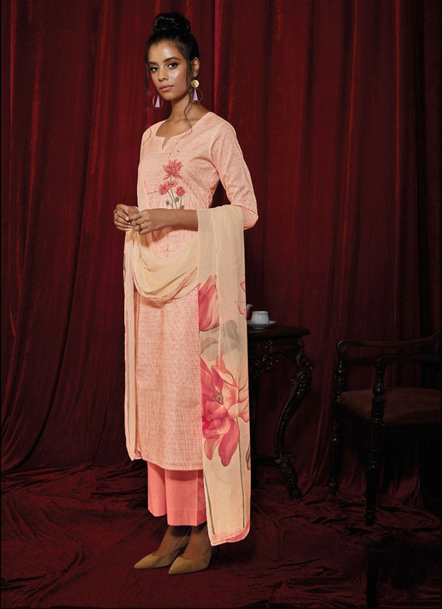 Ganga Pink Pure Cotton Unstitched Salwar Suit Material for Women