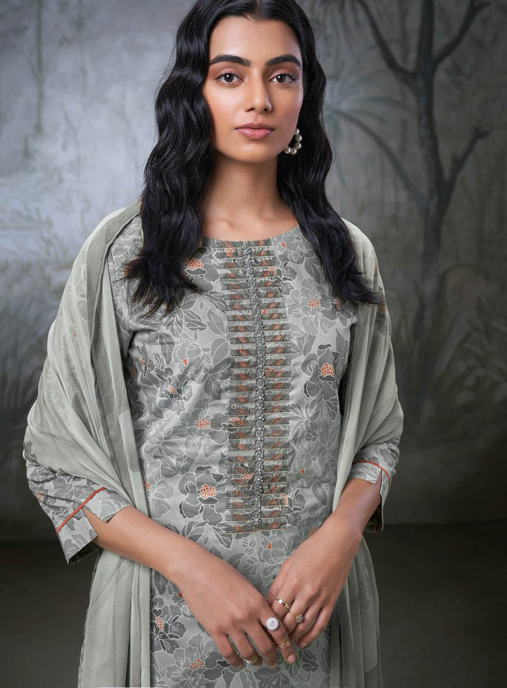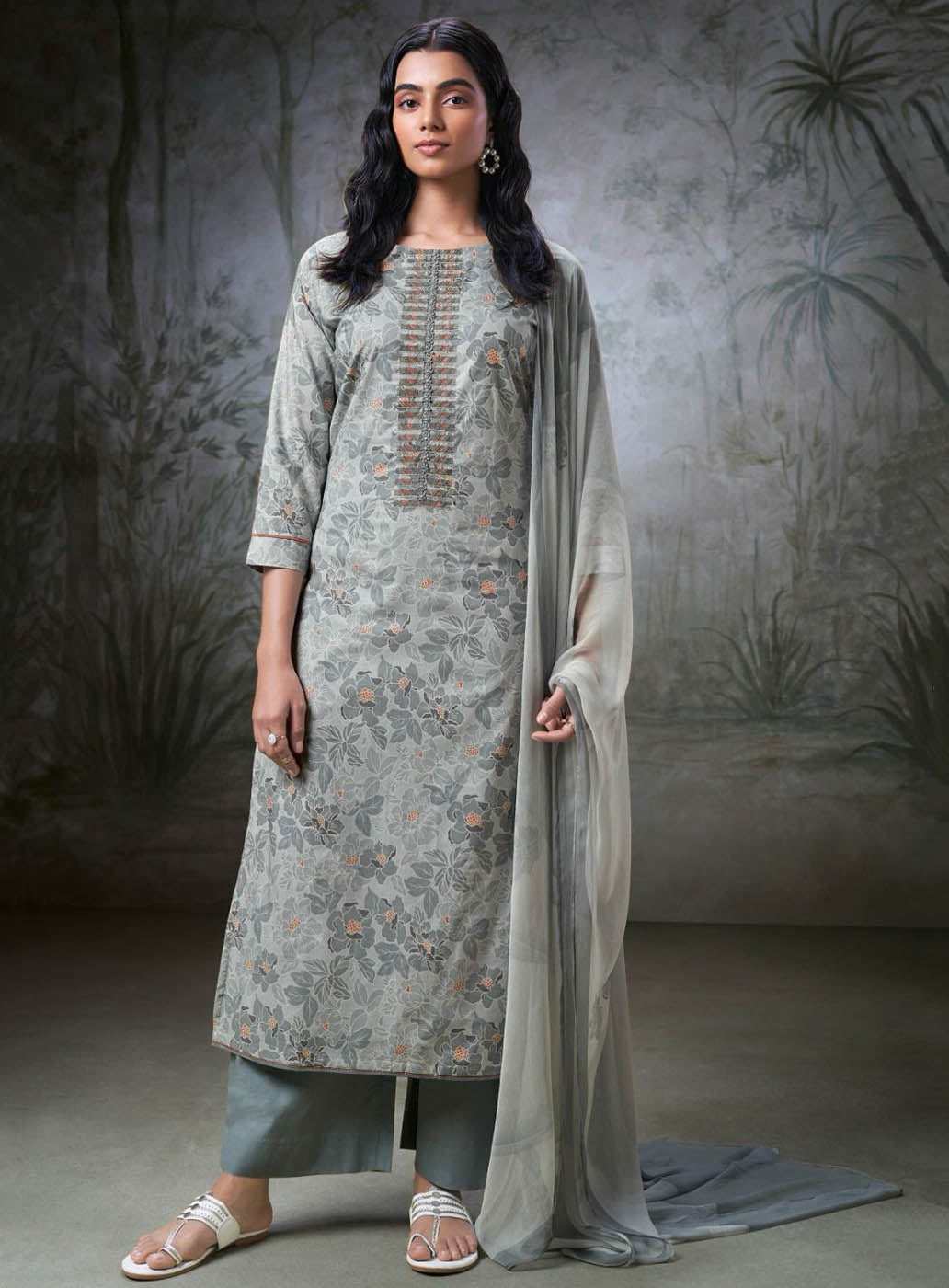 Ganga Grey Pure Cotton Unstitched Suit Fabric Material for Women