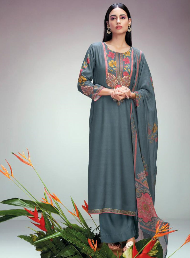 Ganga Printed Unstitched Woolen Pashmina Winter Suit Dress Material